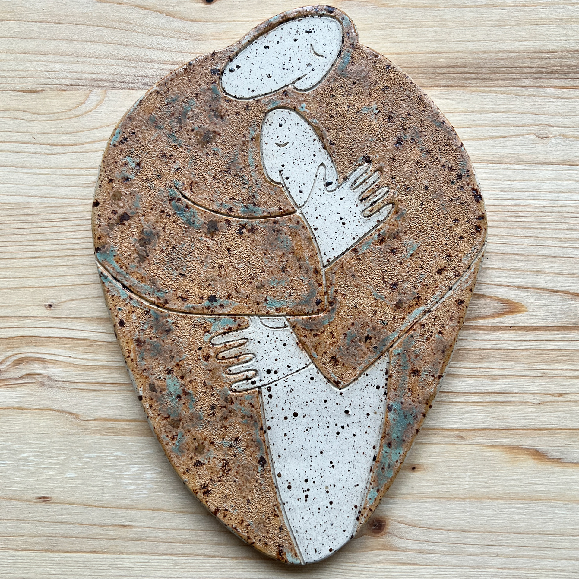Ler med lavapletter, med blågrøn kobberglasur